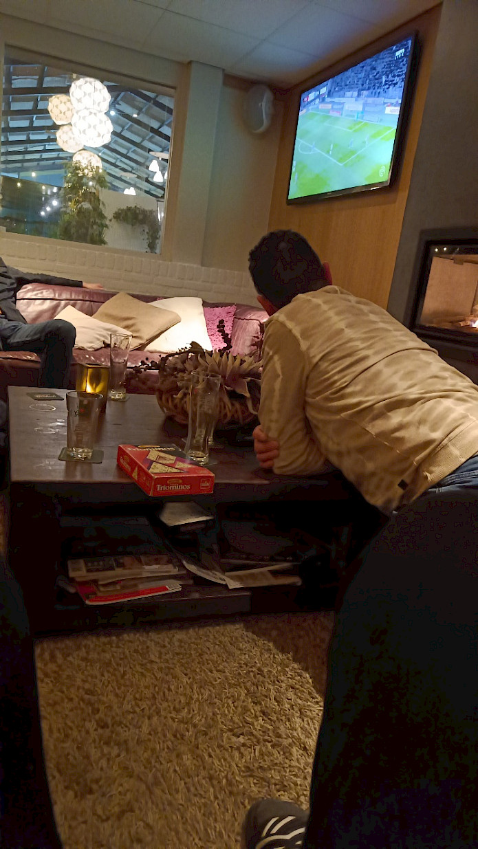 De zaterdagavond werd verder besteed door het klaverjassen, of lekker voetbal kijken onder genot van wat drinken. En helaas moest Aaron ons al verlaten deze avond omdat hij de volgende dag alweer vroeg op wintersport vakantie moest.