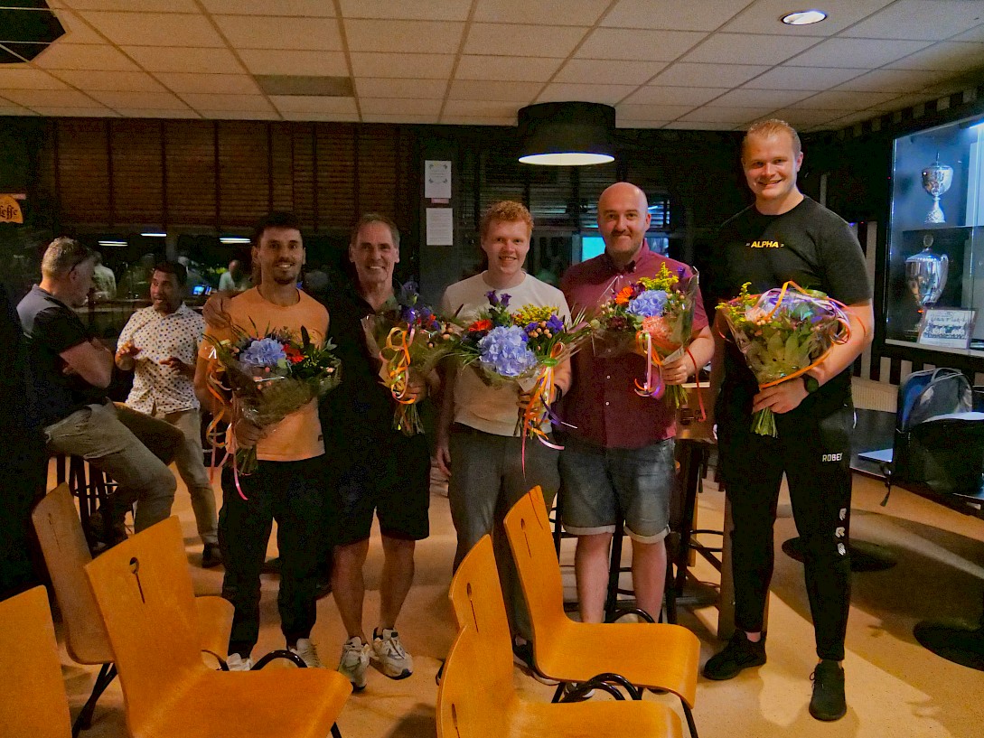 Na de training werden de promovendi in het zonnetje gezet en kregen uit handen van voorzitter Eddy van Yren een mooie bos bloemen. Dit jaar waren dat: Murat Elibol, Kadit Düzdüsen, Jasper Langerak, Jeroen Heijboer, Alexander Borghmans en Perry Sirre.